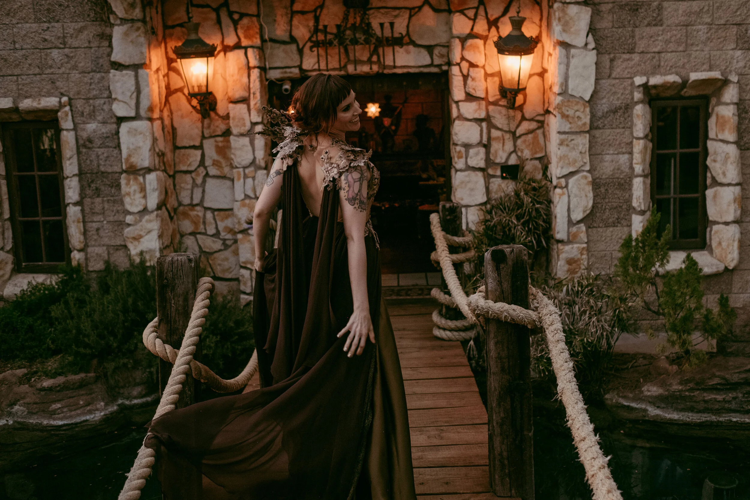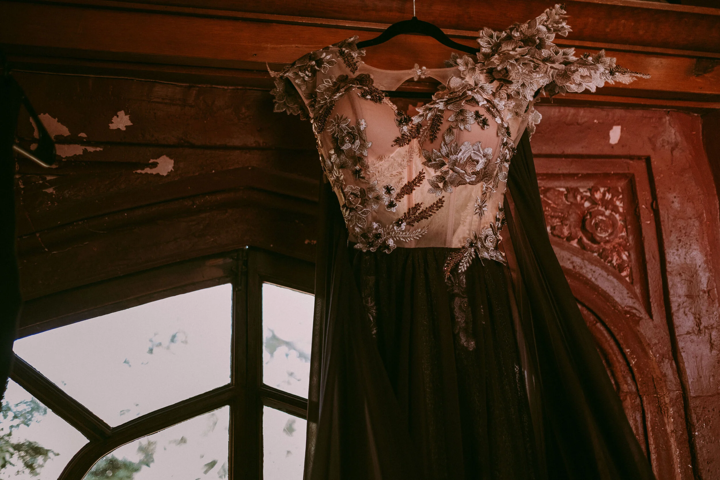 Custom silk organza skirt with dye cut organza flowers and hand beadwork